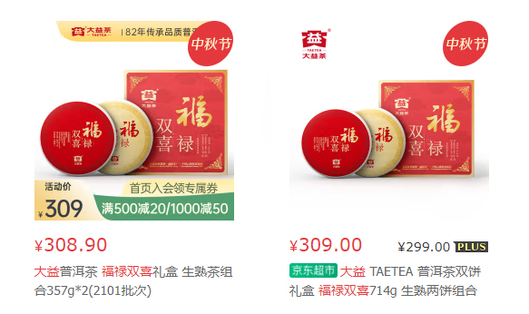 【中秋好茶购】大益普洱·福禄双喜礼盒,茶博会观众专享价258元,限时特惠!
