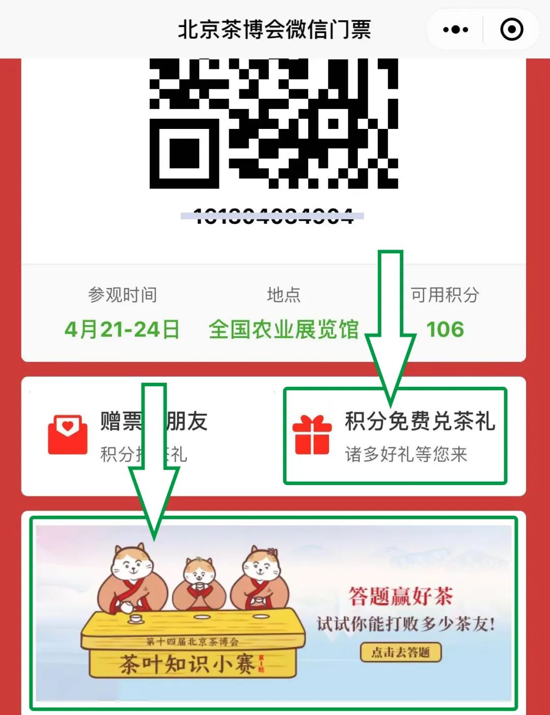*每轮答题结束后,将通过积分系统自动发放积分,会有微信信息提醒呦!如果您完成答题未获得积分,请在【个人中心】添加北京茶博会客服反馈问题。